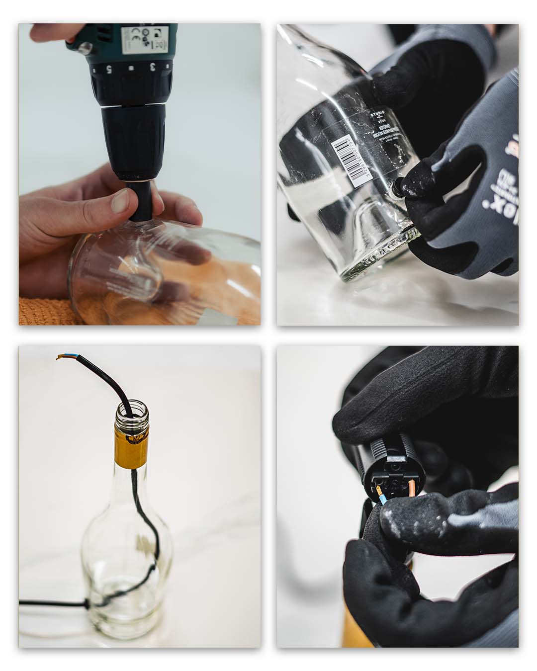 Wenn du uns deine persönliche Flasche zusendest, verwandeln wir sie mit viel Feingefühl, handwerklichem Können und einer Prise Magie in deine ganz eigene Flaschengeist-Lampe.